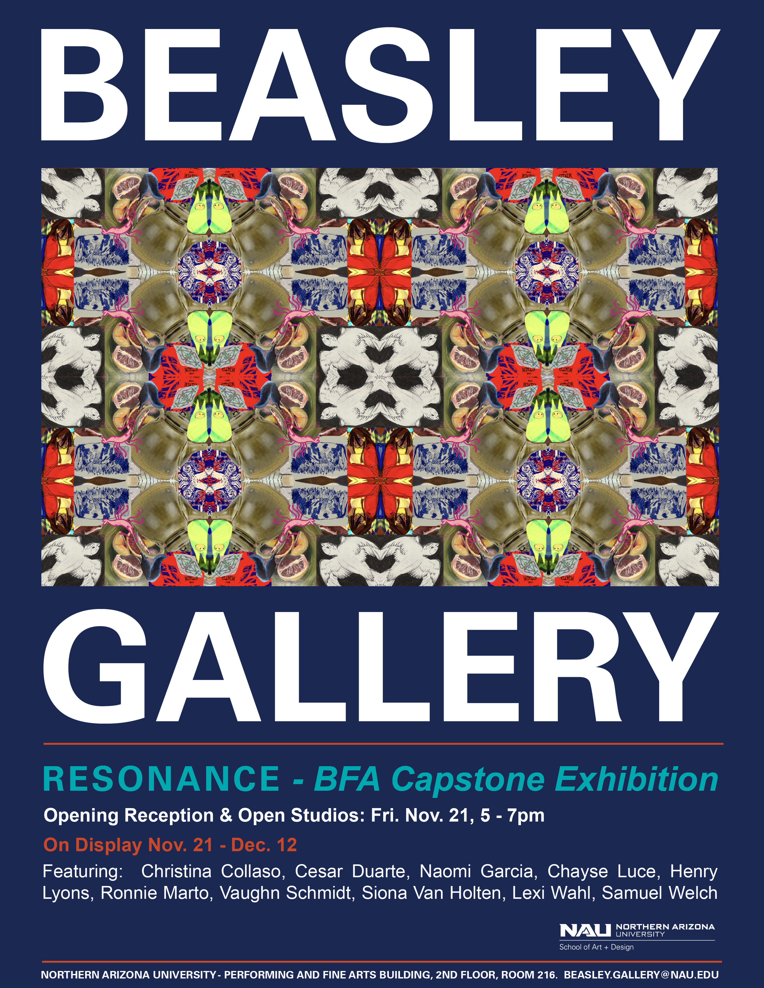 The Beasley Gallery proudly presents Resonance: BFA Capstone Exhibition, showcasing the creative achievements of graduating BFA candidates from the School of Art + Design.